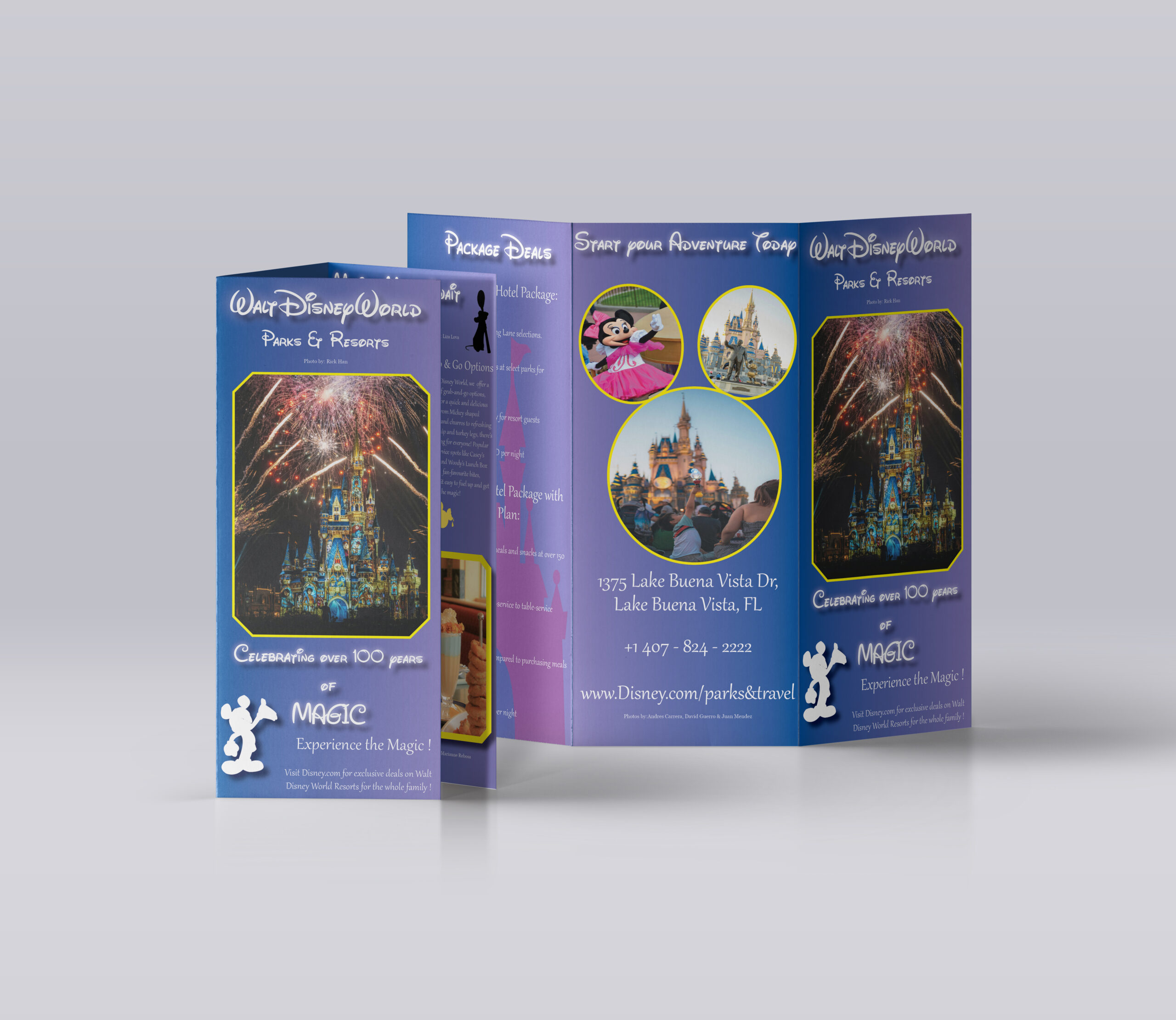 This brochure I created was one of the first designs where I really got comfortable with using Adobe InDesign as the main software. We were instructed to create a tri-fold brochure based on a place or company using paragraph styles and stock imagery. I chose Disney World because of the bright purple and yellow color pallet along with the memories I was able to create here. I got very familiar with using the pen tool for this project which gave me a lot of creative freedom to trace objects and add that extra bit of detail to this piece. Overall, this was my first InDesign project I was so proud of, and I was able to accomplish so much than I ever would have thought.